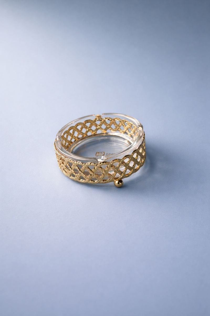 The base is constructed from premium fiber-reinforced resin, providing a durable and heat-resistant frame. Meticulously hand-finished in an antique gold lattice pattern, it offers a classic, royal look that is both lightweight and shatter-resistant compared to solid metal.