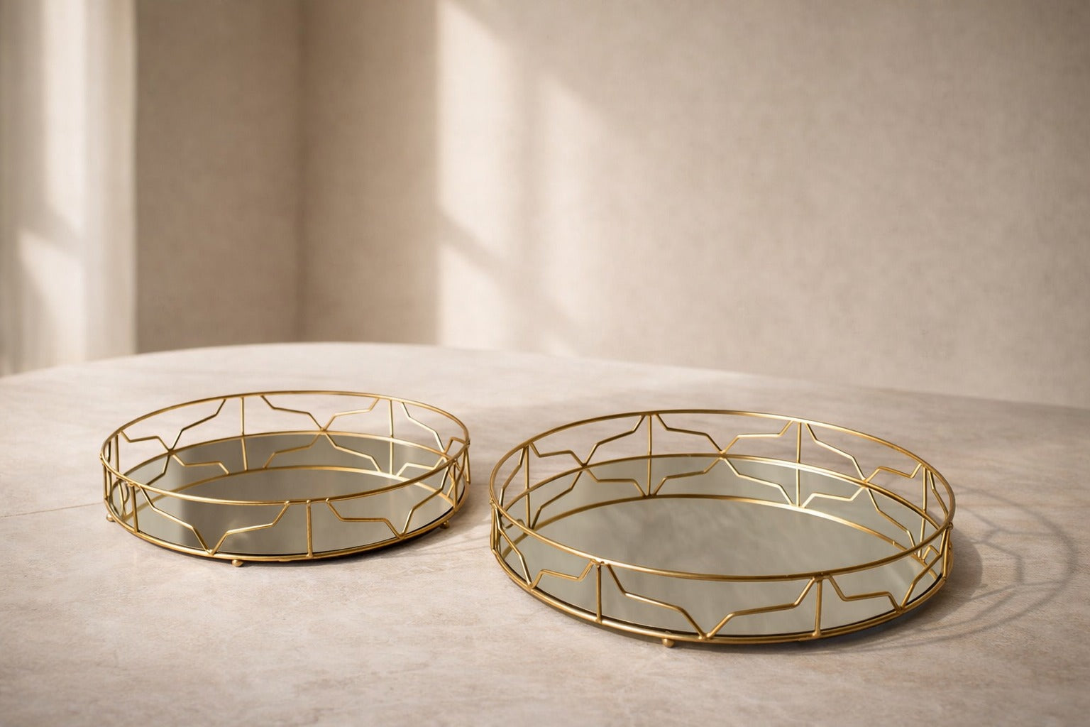 set of 2 Round Mirror Tray